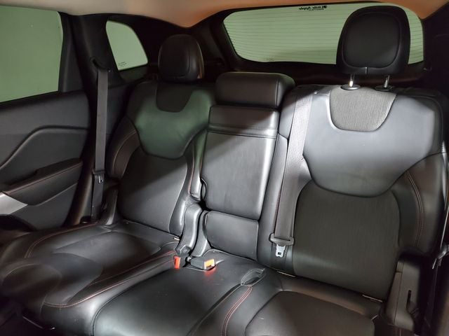 Safety is also a top priority, with features like Blind Spot Monitoring, Rear Cross-Path Detection, and a ParkView Rear Back-Up Camera to help you navigate with confidence. The Jeep Cherokee Trailhawk is also equipped with a suite of advanced airbags and electronic stability control to provide you and your passengers with the utmost protection.